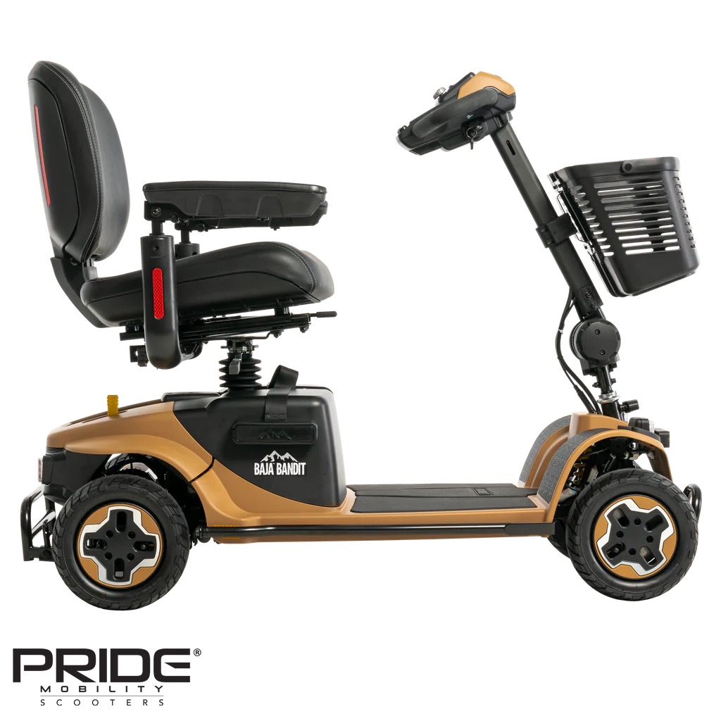 The Baja Bandit is the ultimate outdoor mobility scooter, combining power and agility to boost your confidence on every adventure. This nimble scooter, with a top speed of 10 km/h, is perfect for tackling diverse terrains, featuring advanced suspension and a cutting-edge braking system. Equipped with a lightweight lithium battery, it offers an extended range, making the Baja Bandit your ideal companion for off-road escapades.